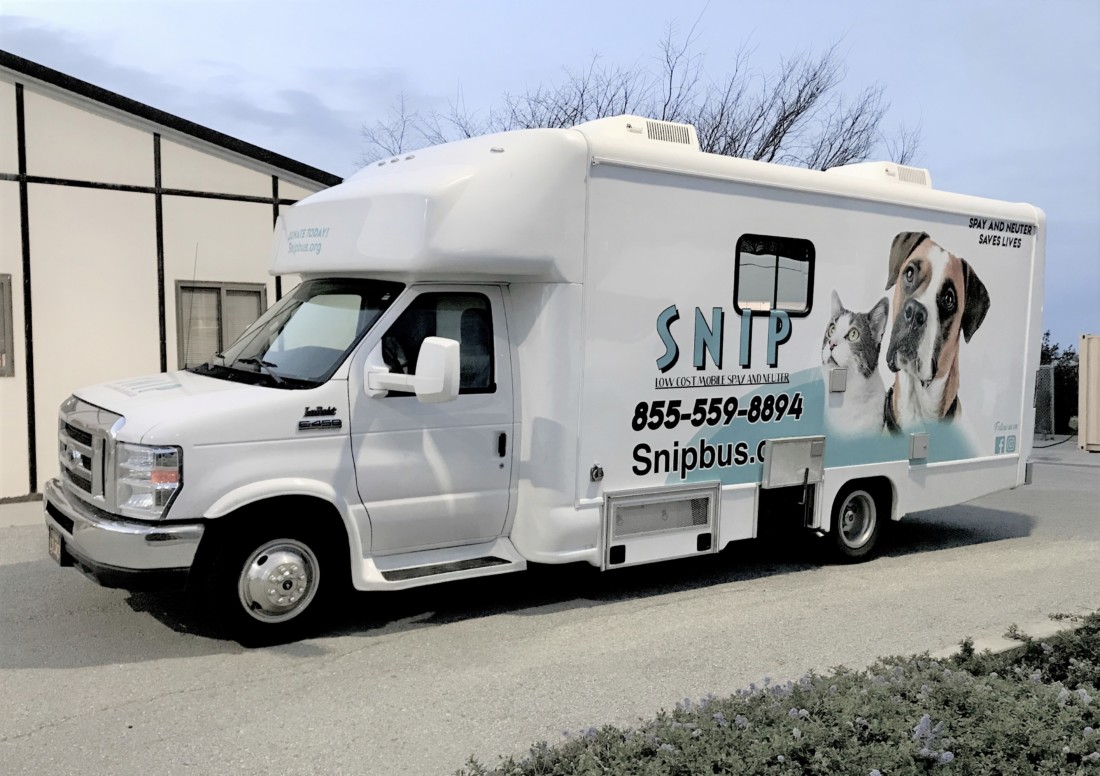 The SNIP Bus (Spay Neuter Imperative Project) is a 501(c)3 low-cost mobile spay and neuter clinic. The bus is independently funded through sponsors.